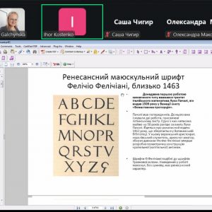 У межах циклу зустрічей, присвячених мистецтву та візуальній комунікації, відбулася лекція доцента Костенка І.О. «Типографіка – від рукописних традицій до цифрових медіа». Під час виступу було простежено шлях розвитку шрифтової культури від середньовічних рукописних трактатів до цифрової доби. Зокрема, наголошувалося, що створення шрифту в давні часи спиралося на точні геометричні побудови та математичні розрахунки, які визначали пропорції кожної літери. Згодом ці вимоги поступово спрощувалися, що дало змогу досягти гармонійного поєднання художньої форми та конструктивної логіки. Важливе місце у лекції відведено майстрам епохи Відродження, які розробили принципи кегельної площі (літера вписувалася у квадрат чи прямокутник) та запропонували використання модульної системи. Саме ці підходи й сьогодні залишаються основою шрифтового дизайну, зокрема в цифрових редакторах та спеціалізованих програмах. Окремий акцент зроблено на класифікації шрифтів, їх типології та правилах поєднання у єдиній композиції. Лектор підкреслив: грамотно підібраний шрифт не лише забезпечує зручність читання, а й створює емоційний настрій, формує сприйняття тексту та посилює його смислове навантаження. Було розглянуто ключові елементи шрифтової форми, що впливають на динаміку чи статику композиції, та наведено практичні поради для дизайнерів і редакторів. Значну увагу приділено також параметрам верстки — кеглю, довжині рядка, інтерліньяжу — й методам їх оптимізації залежно від завдань видання. Саме ці чинники визначають комфортність сприйняття тексту та візуальний баланс сторінки. У цифрову добу типографіка зазнає нових трансформацій. Розглядалися формати шрифтів для друку та вебсередовища, особливості побудови контурних гарнітур, а також процеси растеризації, які впливають на якість відтворення літері. Лектором відзначено зростаючу роль варіативних шрифтів, що дають змогу динамічно змінювати товщину, ширину чи нахил, а також розвиток кінетичної типографіки, яка активно застосовується у відеоконтенті на таких платформах, як YouTube, Instagram та TikTok.Завершуючи лекцію, доповідач підкреслив, що типографіка завжди відображає культурні та стилістичні вимоги часу, що відображується у стильових категоріях. Так, строгий і функціональний швейцарський стиль ХХ століття у сучасних умовах трансформувався та дав народження  менш консервативному стилю, більш вільному у дизайнерських рішеннях,  проте  зберігшому структурність і впливовість.