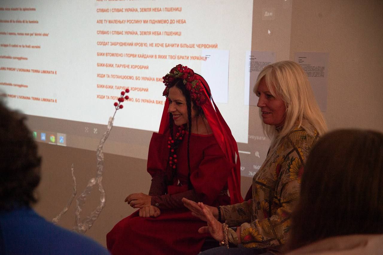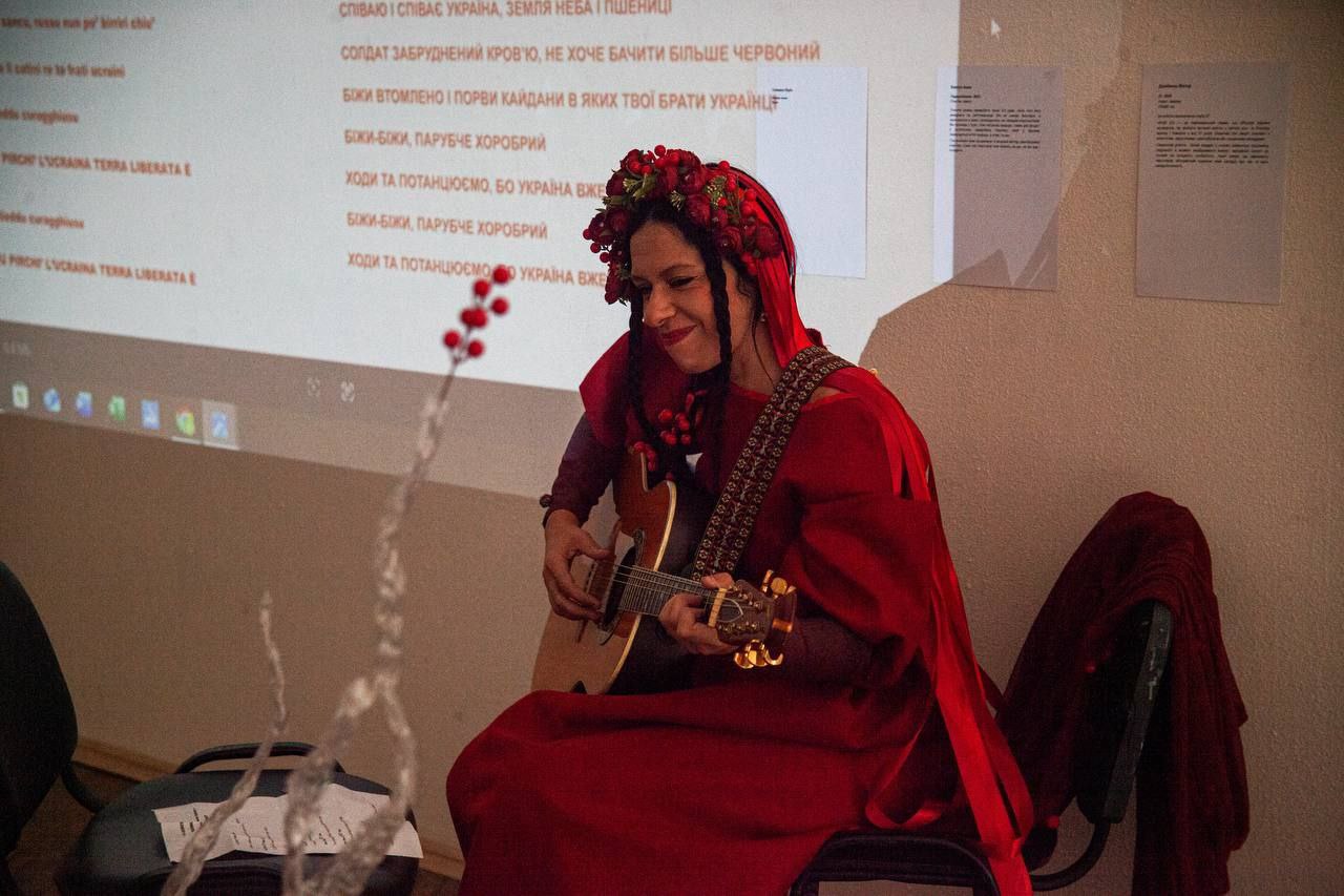 Також, в честь відкриття нашої виставки, вона виконала власноруч перекладену на сицилійську мову пісню ʼʼОй, у лузі червона калина…ʼʼ!