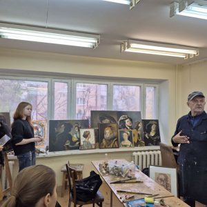 - Побували в майстерні Ореста Пасіки, де познайомилися з техніками старих майстрів: фламандським італійським письмом, сфумато, імпасто, лісуванням.