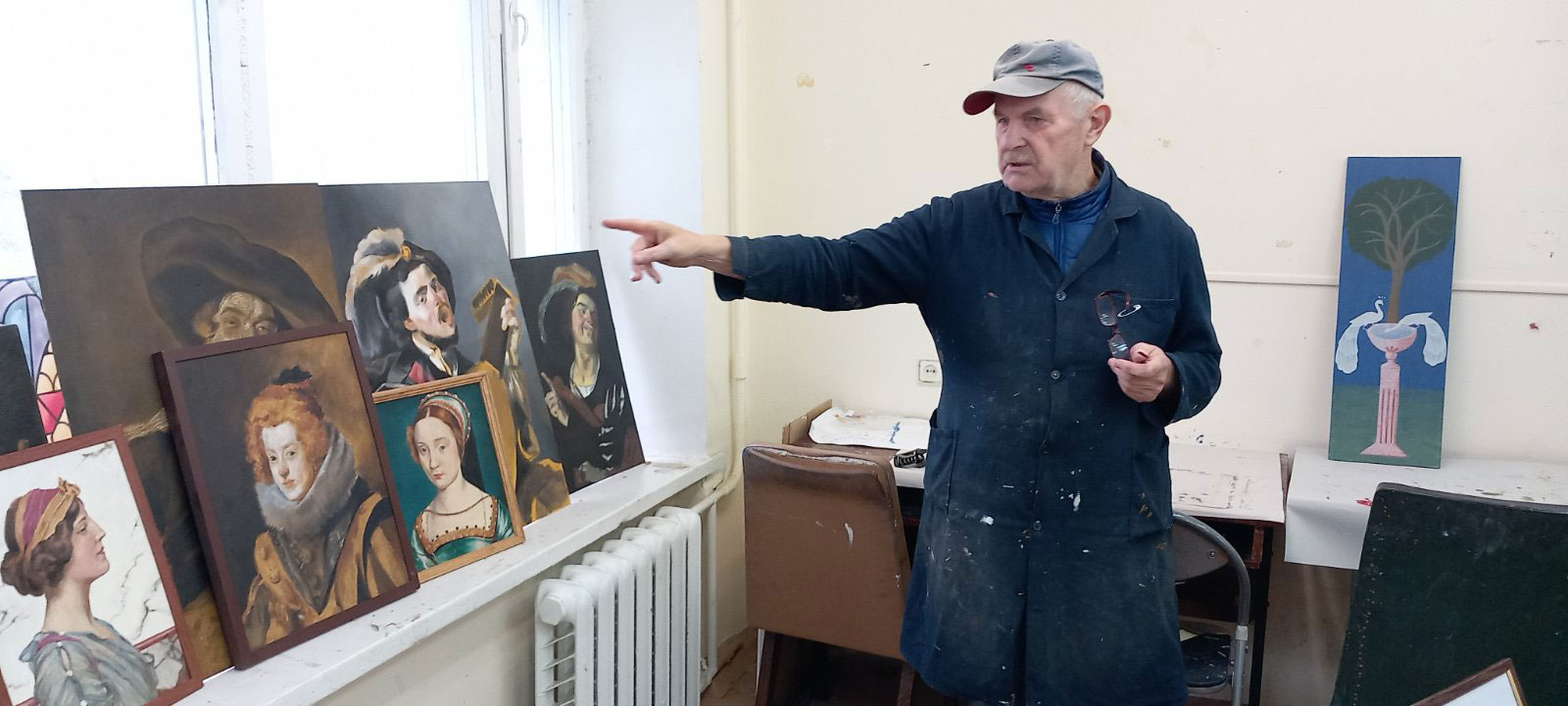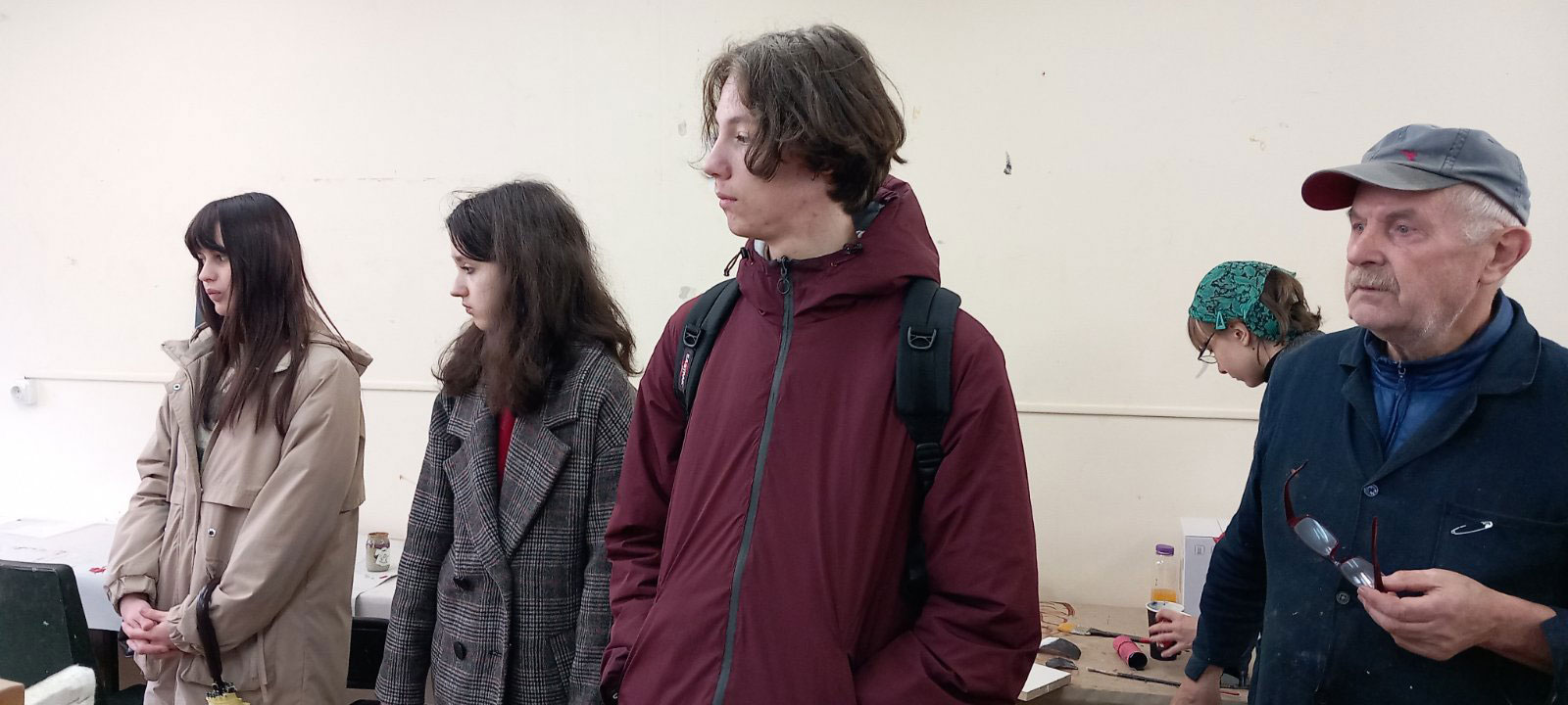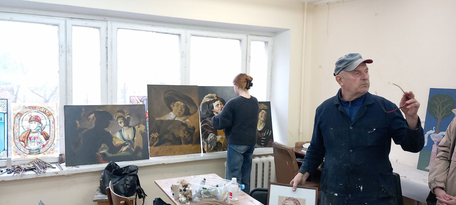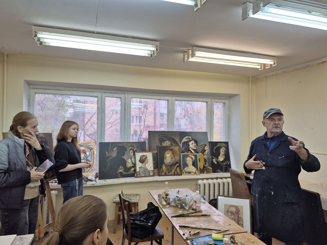 - Побували в майстерні Ореста Пасіки, де познайомилися з техніками старих майстрів: фламандським італійським письмом, сфумато, імпасто, лісуванням.
