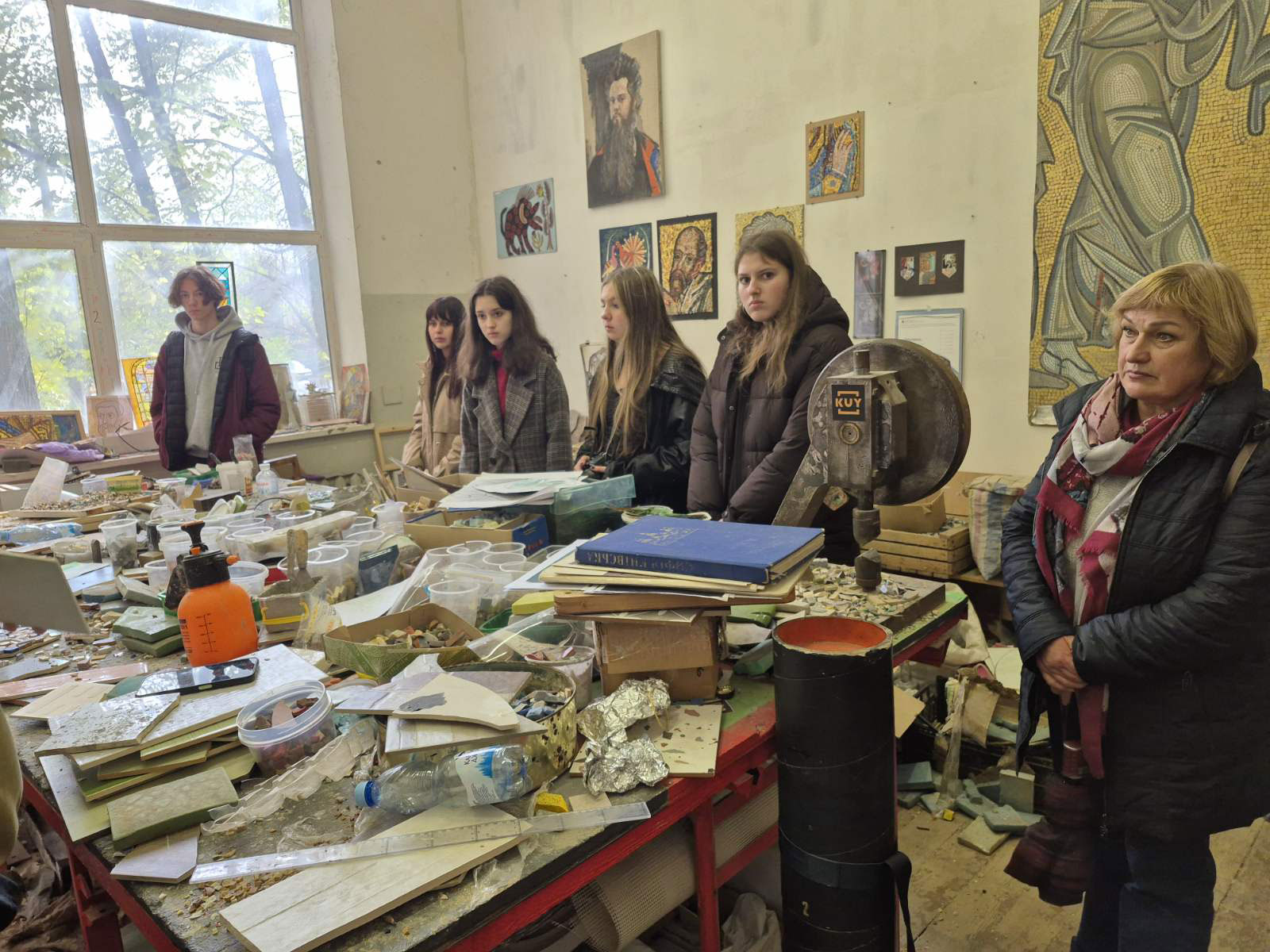 - Відвідали майстерні мозаїки та вітражу, де Олександр Богомаз поділився секретами роботи зі склом, каменем та кольором.