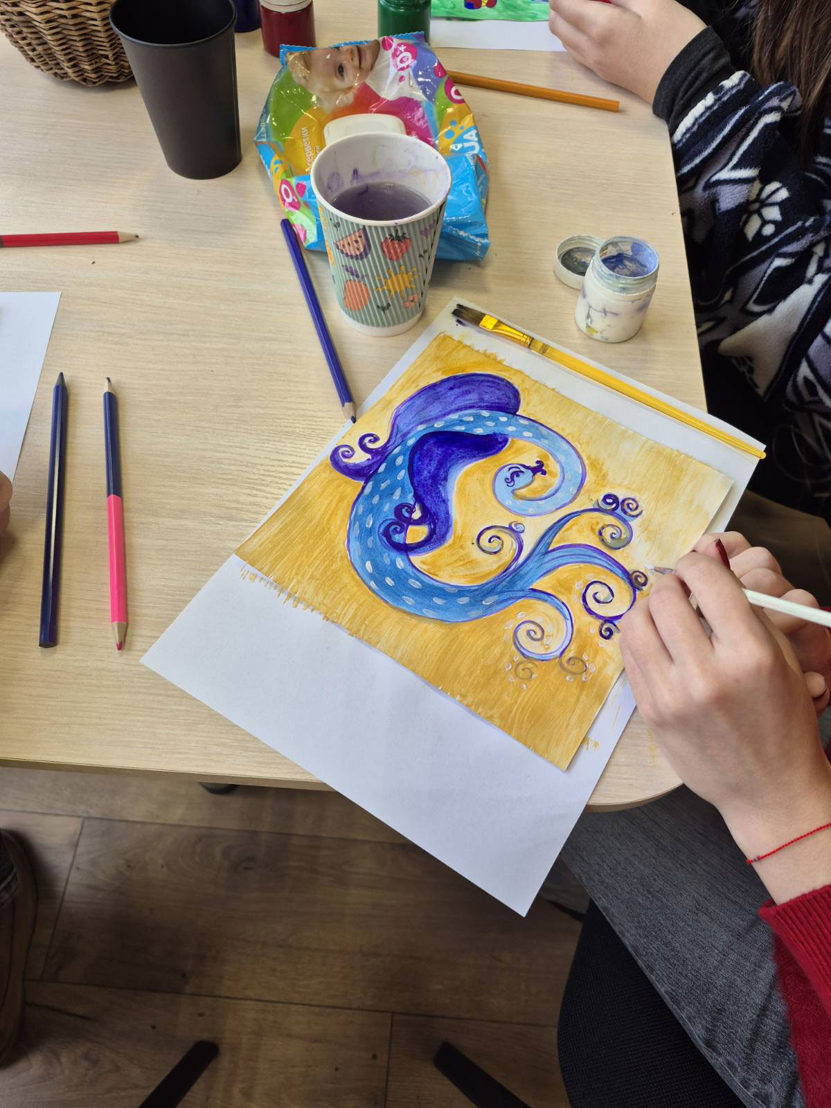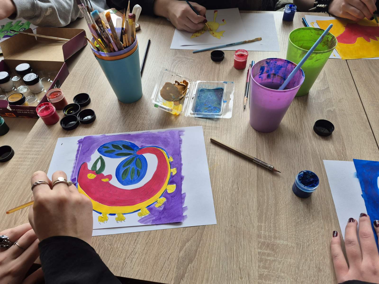 - Завершили день творчою рефлексією на тему мистецтва Марії Приймаченко на майстер-класі від Олександри Романівни Кожушко та Дарʼї Геннадіївни Андреєвої.