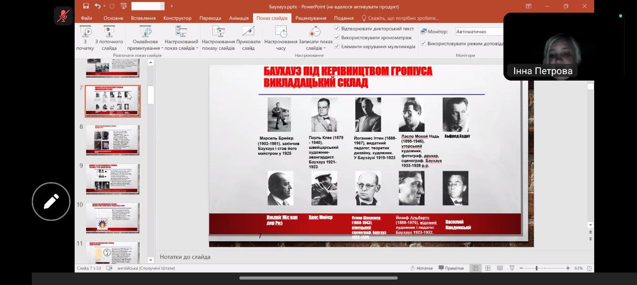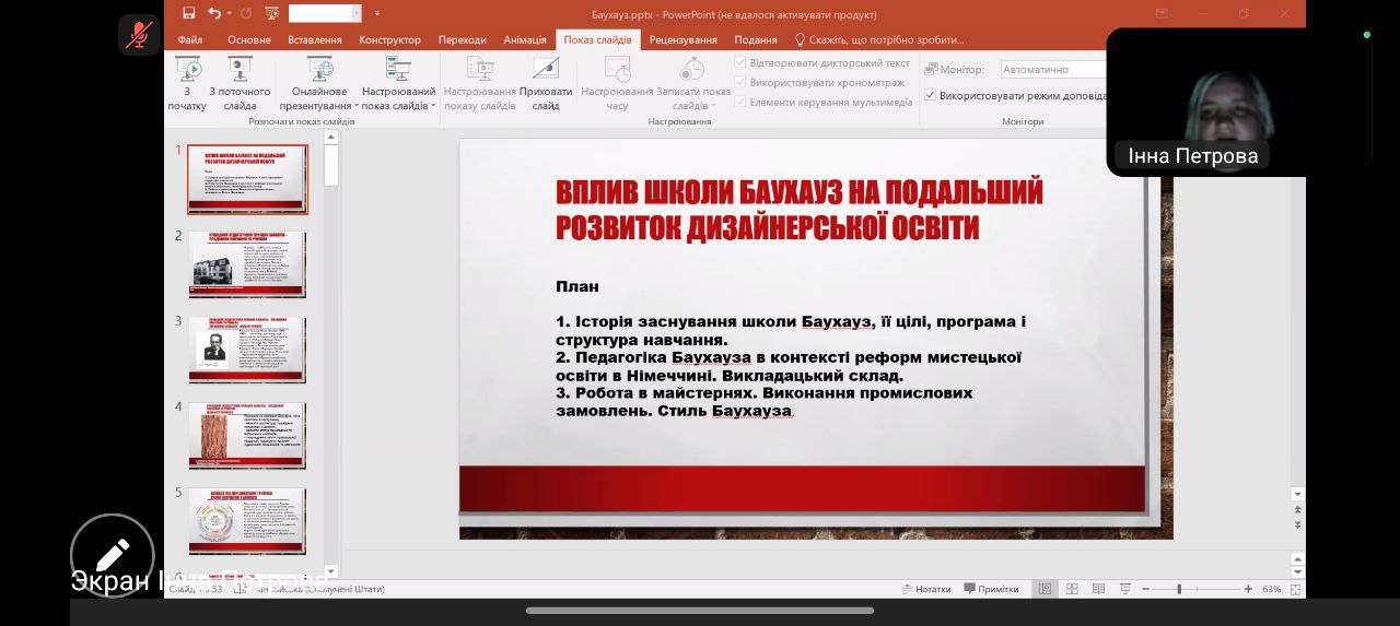 4 листопада 2025 р. професором кафедри графічного дизайну І. Петровою була проведена відкрита лекція за темою: «Вплив школи Баухауз на подальший розвиток дизайнерської освіти».