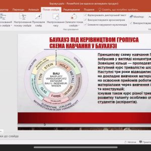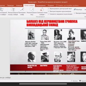 3) Період дезінтеграції. Ера Х. Майера і М. ван дер Рое. Робота на промислові замовлення. Дессау-Берлін (1928-1933). Також під час проведення лекції було акцентовано увагу на педагогічній та проєктній діяльності викладачів цього навчального закладу. З діяльністю Баухауза пов’язані імена найбільших представників мистецтва першої половини XX століття: В.Кандинський, П. Клеє, Й. Іттен, О. Шлеммер, Г. Мухе, Л. Файнінгер, Й.Альберс, Г. Маркс та інші, директорами школи були найвизначніші архітектори свого часу: В. Гропіус, Х. Майер і М. ван дер Рое.