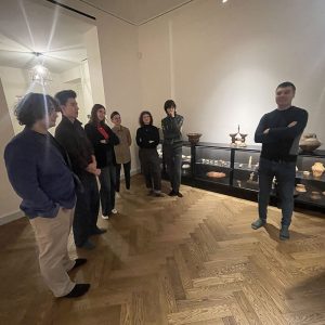 Серед експонатів студенти змогли побачити артефакти трипільської культури, що демонструють ранні символічні та пластичні форми українського культурного простору, твори доби бароко, косівської кераміки, а також зразки українського авангарду, що засвідчують новаторські пошуки художників початку ХХ століття.