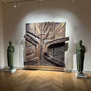 Особливу увагу здобувачів привернула частина колекції, присвячена творчості сучасного українського митця Олександра Животкова. Роботи художника є прикладом глибокої духовної виразності, де матеріальність дерева поєднується з медитативністю образу та філософською глибиною.