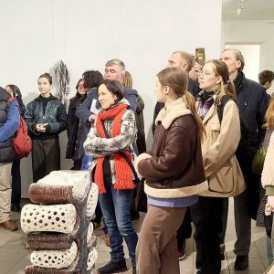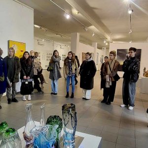 13 листопада здобувачі освіти рівнів «бакалавр» і «магістр» та викладачі кафедри ХКДСМ відвідали Всеукраїнський культурно-мистецький проєкт «Мистецтво вогню», що експонується у виставкових залах Центрального будинку художника. Під час візиту відбулася зустріч з головою секції декоративного мистецтва Київської організації Національної спілки художників України, автором ідеї цього проєкту Володимиром Балибердіним. Володимир Іванович ознайомив студентів із діяльністю НСХУ, поділився власним досвідом організації мистецьких виставок та окреслив сучасні тенденції у розвитку декоративного мистецтва. Спільно із кураторами виставки – Володимиром Хижинським, Миколою Лампекою, Тетяною Ільїною провели кураторську екскурсію. Зустріч стала цінною нагодою для молодих митців поглибити знання про сучасний український мистецький процес і безпосередньо поспілкуватися з одним із його активних представників.