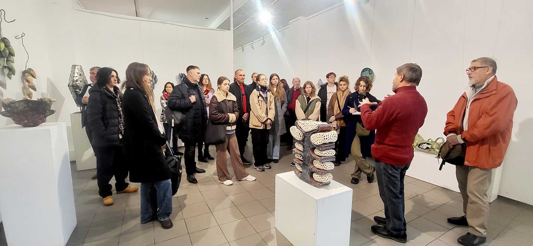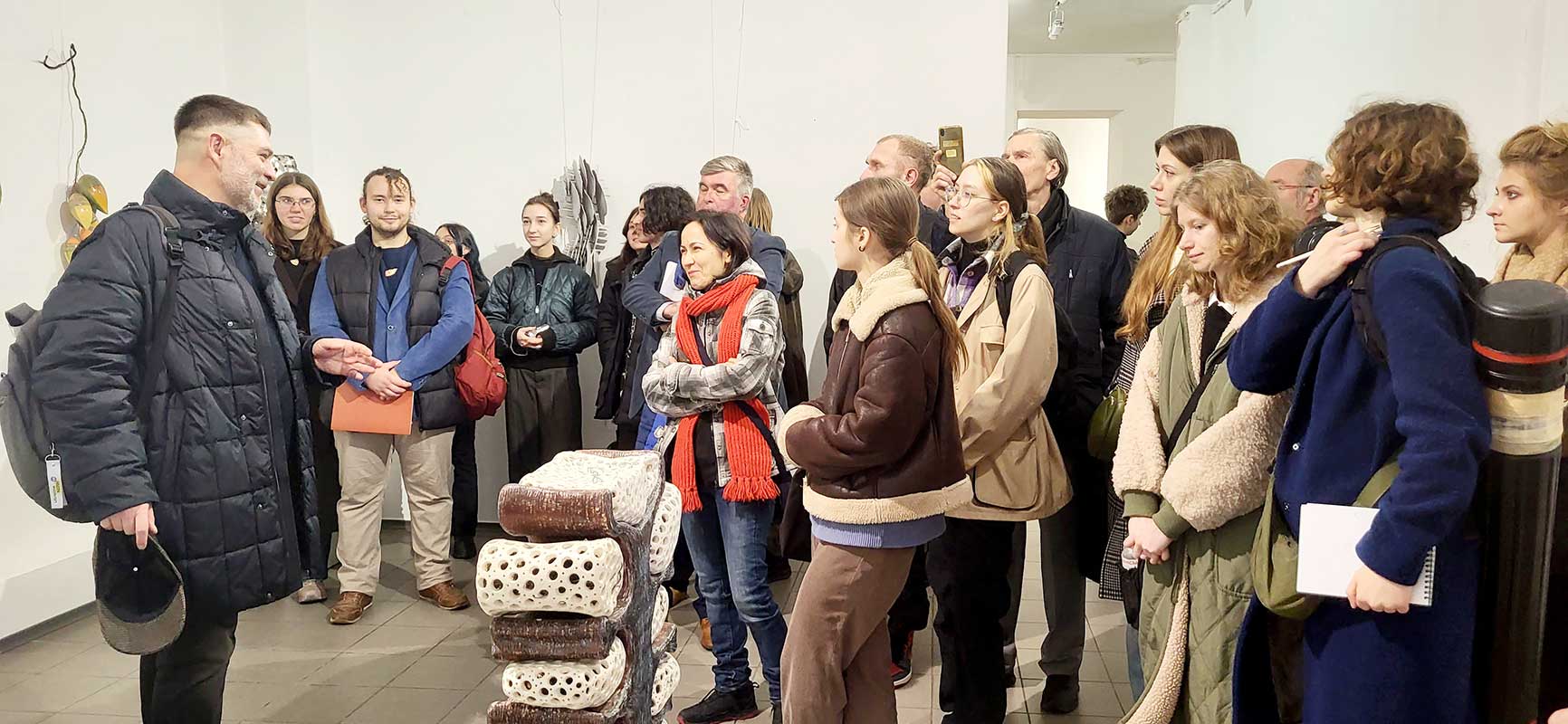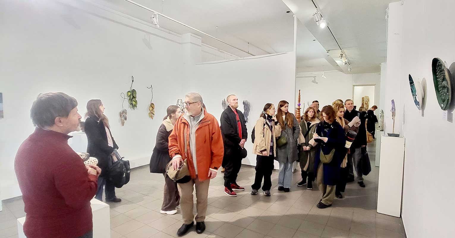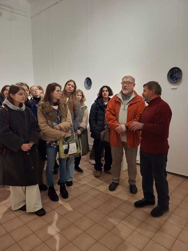 13 листопада здобувачі освіти рівнів «бакалавр» і «магістр» та викладачі кафедри ХКДСМ відвідали Всеукраїнський культурно-мистецький проєкт «Мистецтво вогню», що експонується у виставкових залах Центрального будинку художника. Під час візиту відбулася зустріч з головою секції декоративного мистецтва Київської організації Національної спілки художників України, автором ідеї цього проєкту Володимиром Балибердіним. Володимир Іванович ознайомив студентів із діяльністю НСХУ, поділився власним досвідом організації мистецьких виставок та окреслив сучасні тенденції у розвитку декоративного мистецтва. Спільно із кураторами виставки – Володимиром Хижинським, Миколою Лампекою, Тетяною Ільїною провели кураторську екскурсію. Зустріч стала цінною нагодою для молодих митців поглибити знання про сучасний український мистецький процес і безпосередньо поспілкуватися з одним із його активних представників.