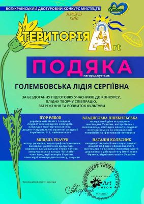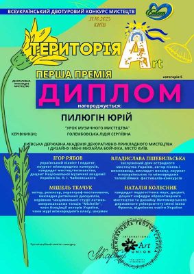 Студент ІІ МСЖ-2, Юрій Пилюгін, під керівництвом Голембовської Лідії Сергіївни, здобув І премію у престижному конкурсі «Територія Арт».