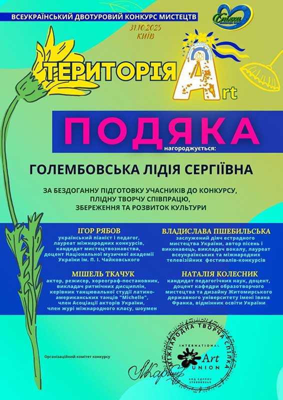 Студент ІІ МСЖ-2, Юрій Пилюгін, під керівництвом Голембовської Лідії Сергіївни, здобув І премію у престижному конкурсі «Територія Арт».