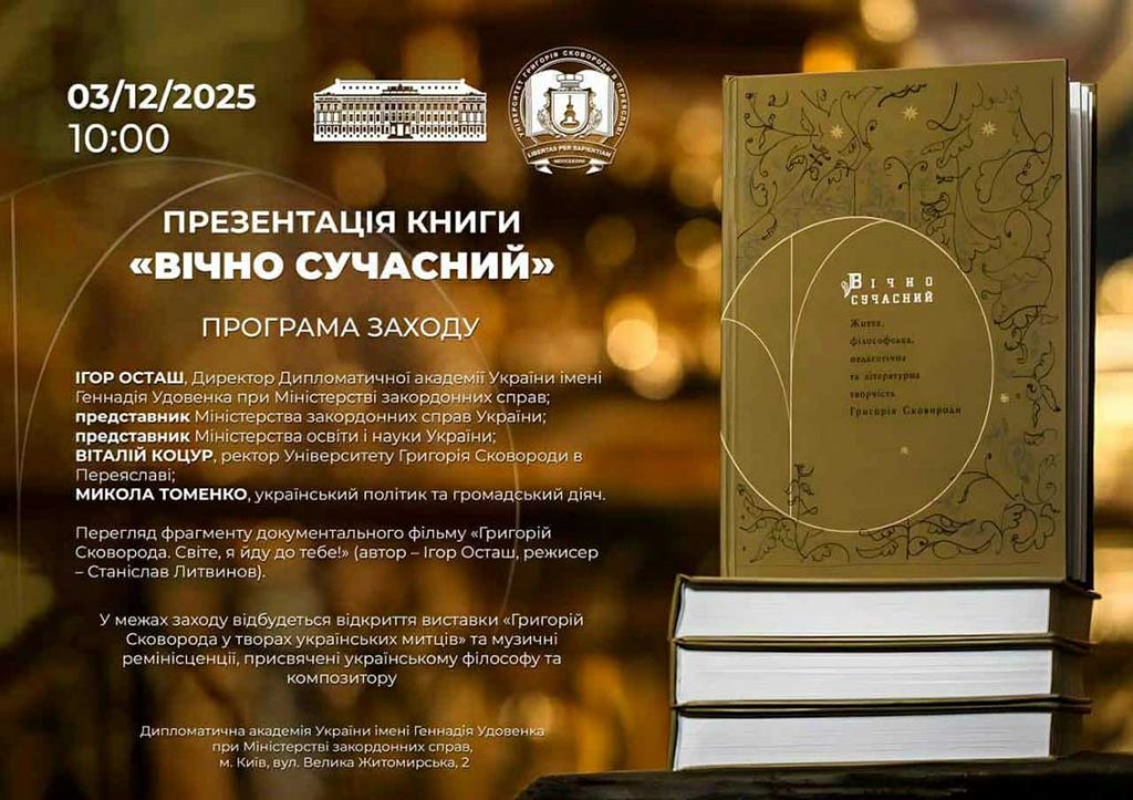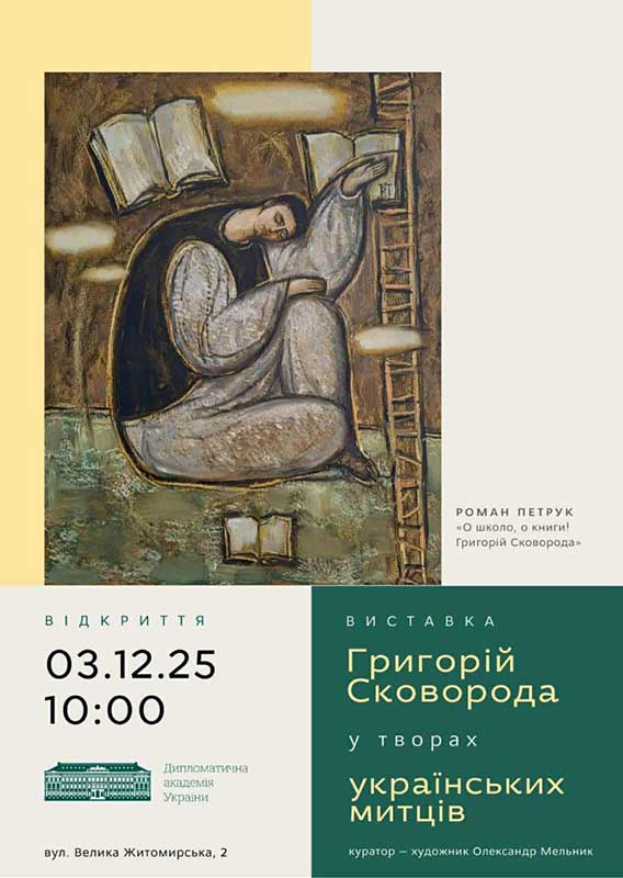 03.12.2025 о 10:00 в Дипломатичній академії України відбудеться відкриття виставки «Григорій Сковорода у творах українських митців».