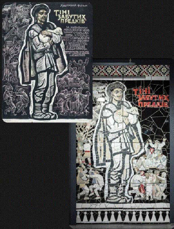 Робота виконана за мотивами ліногравюри Георгія Якутовича, створеної ним для афіші культового фільму «Тіні забутих предків», художником-постановником якого він був. Попри те, що свого часу ця афіша так і не була використана кіностудією, сьогодні образ отримав нове життя у форматі монументального мистецтва.