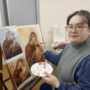 Студенти 5 курсу спеціальності «Образотворче мистецтво» Київської державної академії декоративно-прикладного мистецтва і дизайну імені Михайла Бойчука в межах опрацювання дисципліни «Поліхромія храмів» та підготовки до заліку виконали комплекс практичних і теоретичних завдань, спрямованих на глибоке розуміння принципів сакрального мистецтва та храмового простору.