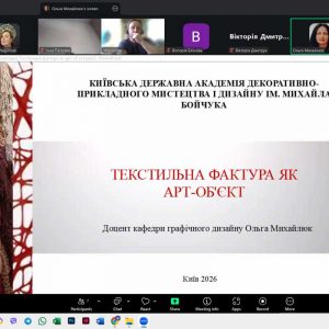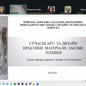 12 лютого 2026 р. в межах виконання ЗУ «Про внесення змін до деяких законів України щодо розвитку індивідуальних освітніх траєкторій та вдосконалення освітнього процесу» (23.04.2024), формування індивідуальної освітньої траєкторії здобувачів вищої освіти з урахуванням його здібностей, інтересів, потреб, мотивації, можливостей і досвіду для ЗВО були презентовані вибіркові дисципліни. Студентам 2 курсу були презентовані дисципліни: «Скульптинг 3D об’єктів, «Концептуальний колаж», «Практикум з художньої кераміки», «Обробка відеоматеріалів», «Відеомеппінг», «Живопис спеціальний 2», «Основи реставрації», «Текстильна фактура як артоб’єкт». Для здобувачів вищої освіти були презентовані дисципліни: «Веб та медіадизайн»; «Сучасні арт та дизайн практики: матеріали, засоби, техніки»; «Перформанс», «3D трекінг та композінг, «Моушен-дизайн», «Мережеве мистецтво (Internet Art) », «2D анімація»; «3D анімація»; «Ділова комунікація в мистецькій сфері»; «Основи ораторської майстерності», «Ділове спілкування та онлайн-комунікація в професійній діяльності», «Академічне письмо та ведення ділової документації», «Основи проектно-грантової діяльності», «Креативні індустрії. Власна справа», «Основи аукціонної діяльності», «Краса людського тіла в мистецтві».