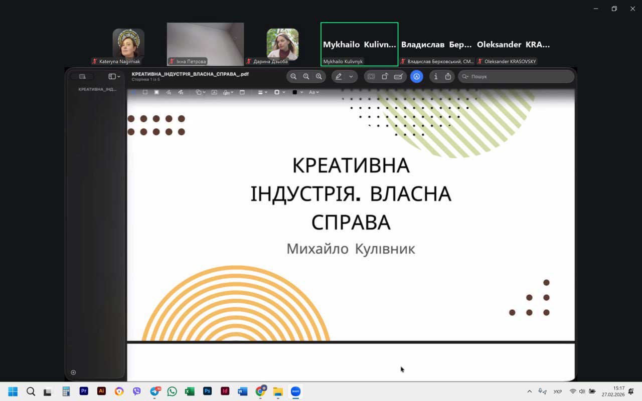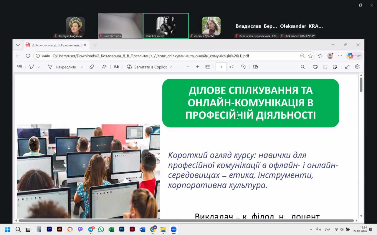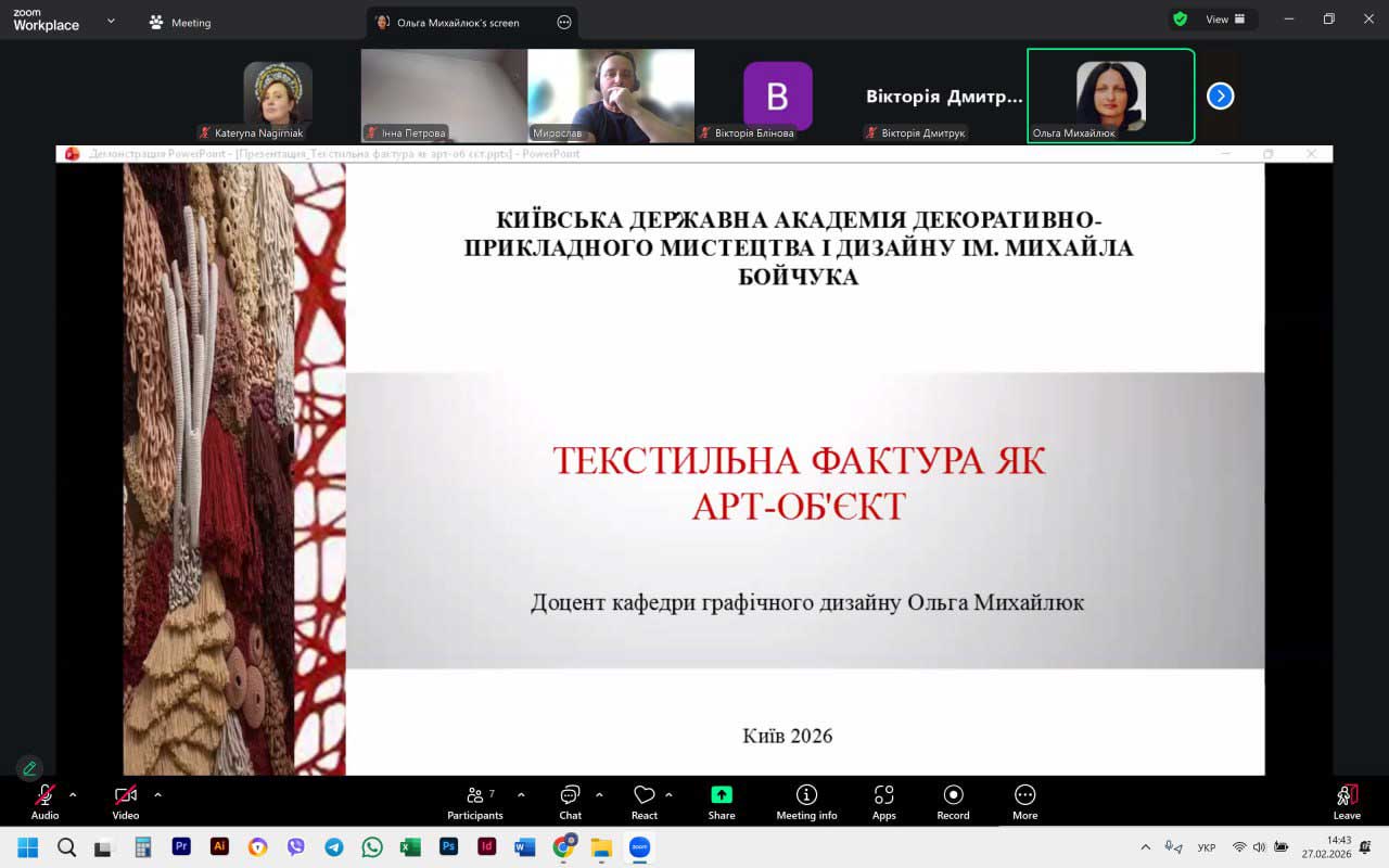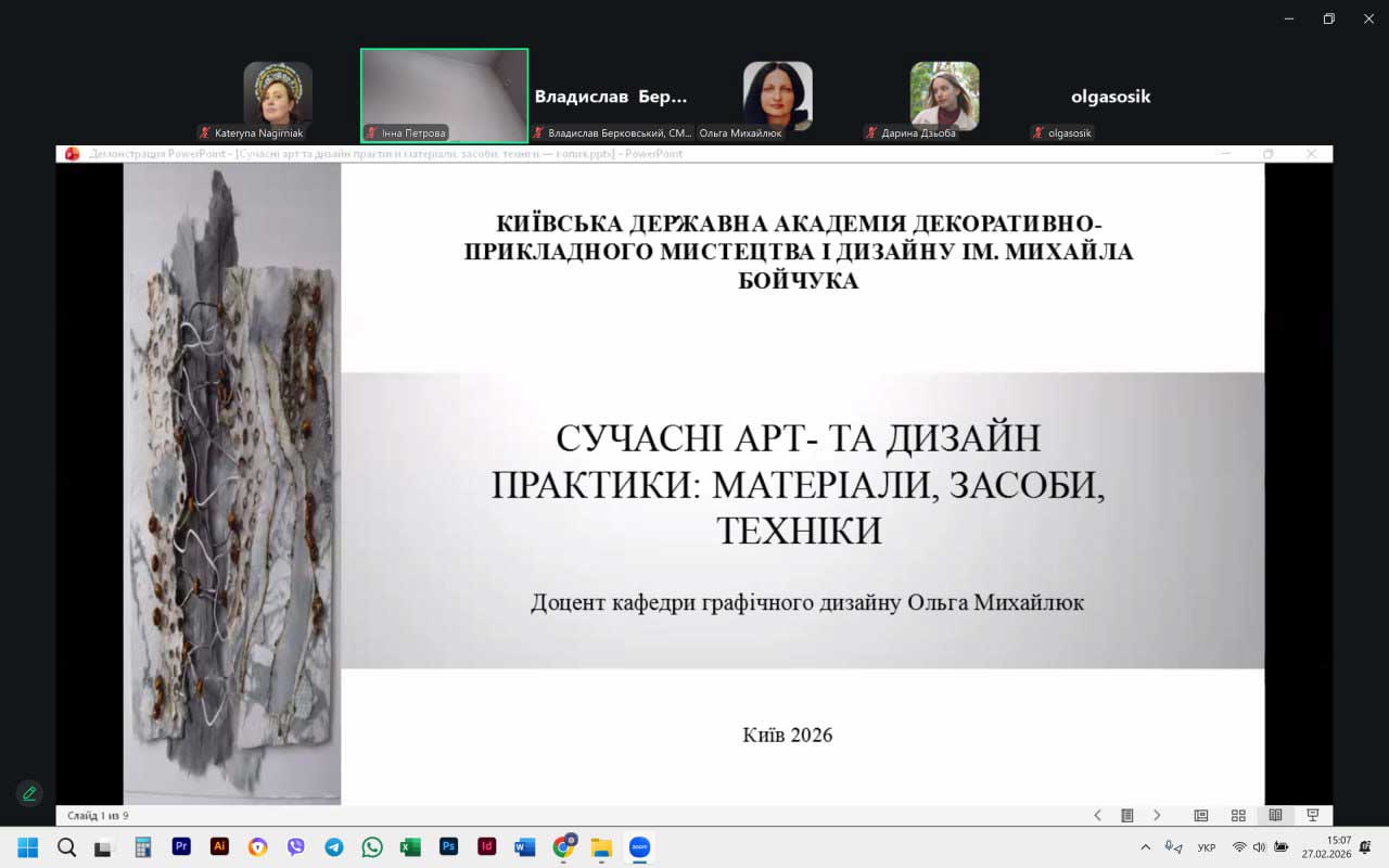 12 лютого 2026 р. в межах виконання ЗУ «Про внесення змін до деяких законів України щодо розвитку індивідуальних освітніх траєкторій та вдосконалення освітнього процесу» (23.04.2024), формування індивідуальної освітньої траєкторії здобувачів вищої освіти з урахуванням його здібностей, інтересів, потреб, мотивації, можливостей і досвіду для ЗВО були презентовані вибіркові дисципліни. Студентам 2 курсу були презентовані дисципліни: «Скульптинг 3D об’єктів, «Концептуальний колаж», «Практикум з художньої кераміки», «Обробка відеоматеріалів», «Відеомеппінг», «Живопис спеціальний 2», «Основи реставрації», «Текстильна фактура як артоб’єкт». Для здобувачів вищої освіти були презентовані дисципліни: «Веб та медіадизайн»; «Сучасні арт та дизайн практики: матеріали, засоби, техніки»; «Перформанс», «3D трекінг та композінг, «Моушен-дизайн», «Мережеве мистецтво (Internet Art) », «2D анімація»; «3D анімація»; «Ділова комунікація в мистецькій сфері»; «Основи ораторської майстерності», «Ділове спілкування та онлайн-комунікація в професійній діяльності», «Академічне письмо та ведення ділової документації», «Основи проектно-грантової діяльності», «Креативні індустрії. Власна справа», «Основи аукціонної діяльності», «Краса людського тіла в мистецтві».