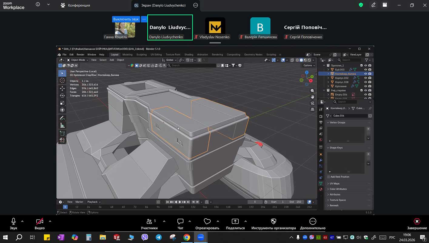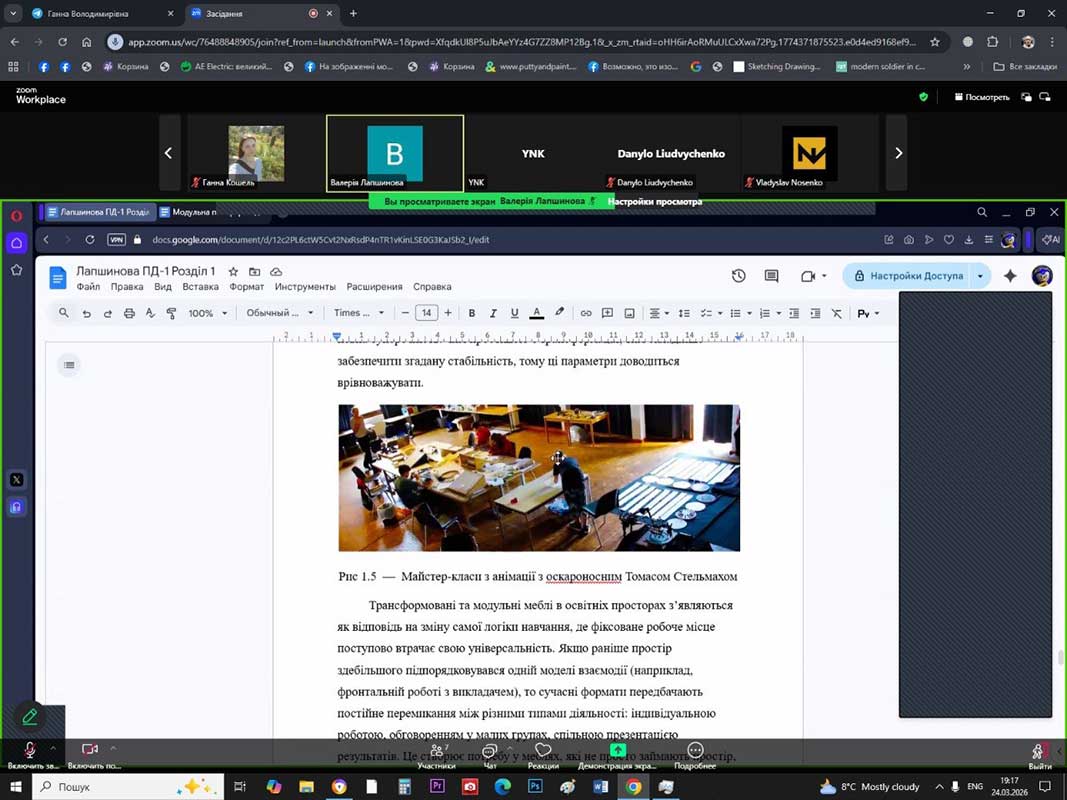 24 березня 2026 року на кафедрі промислового дизайну та комп’ютерних технологій відбулася онлайн-зустріч здобувачів освіти 4 курсу першого (бакалаврського) рівня вищої освіти у форматі консультації з дипломного проєктування. Захід було організовано у позааудиторний час з метою забезпечення рівних можливостей для всіх студентів, зокрема тих, які навчаються дистанційно та не мають змоги відвідувати заняття в аудиторному форматі.