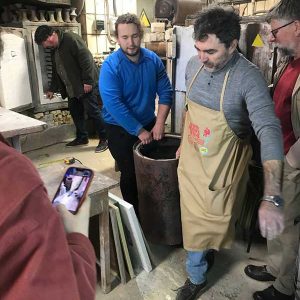 Особливу увагу було приділено технологічним аспектам випалу: умовам закладання виробів, особливостям горіння та контролю процесу. Студенти не лише спостерігали, а й безпосередньо долучалися до роботи — самостійно завантажували вироби до печі та брали участь у їх вийманні, аналізуючи отримані результати.