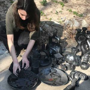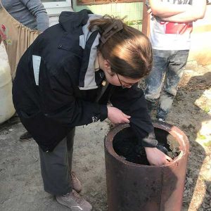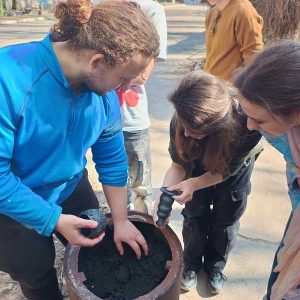 Під час заняття студенти здійснили відкриття печі після чорнодимленого випалу — складного та водночас унікального технологічного процесу, що дозволяє досягати глибоких чорних відтінків і характерної фактурності поверхні кераміки.