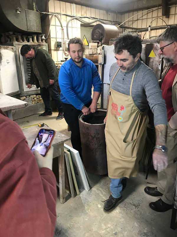 Особливу увагу було приділено технологічним аспектам випалу: умовам закладання виробів, особливостям горіння та контролю процесу. Студенти не лише спостерігали, а й безпосередньо долучалися до роботи — самостійно завантажували вироби до печі та брали участь у їх вийманні, аналізуючи отримані результати.