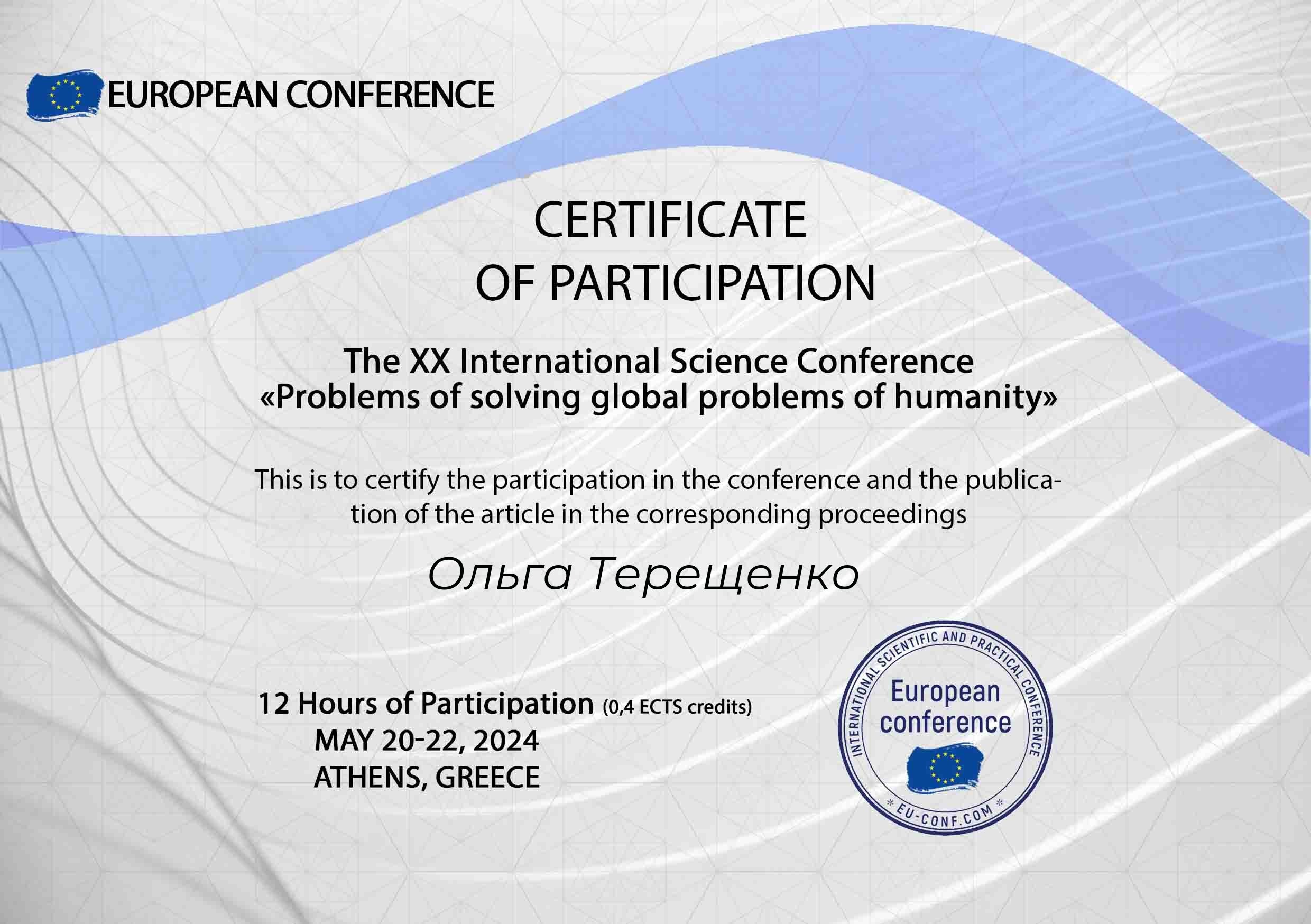 Участь в наукових конференціях