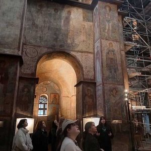 Екскурсія відбулася за участі професійного екскурсовода та охопила як музейні експозиції, так і територію заповідника. Студенти мали можливість ознайомитися з унікальними зразками монументального мистецтва, зокрема давніми фресками та мозаїками, що є визначними пам’ятками візантійської та української художньої традиції.