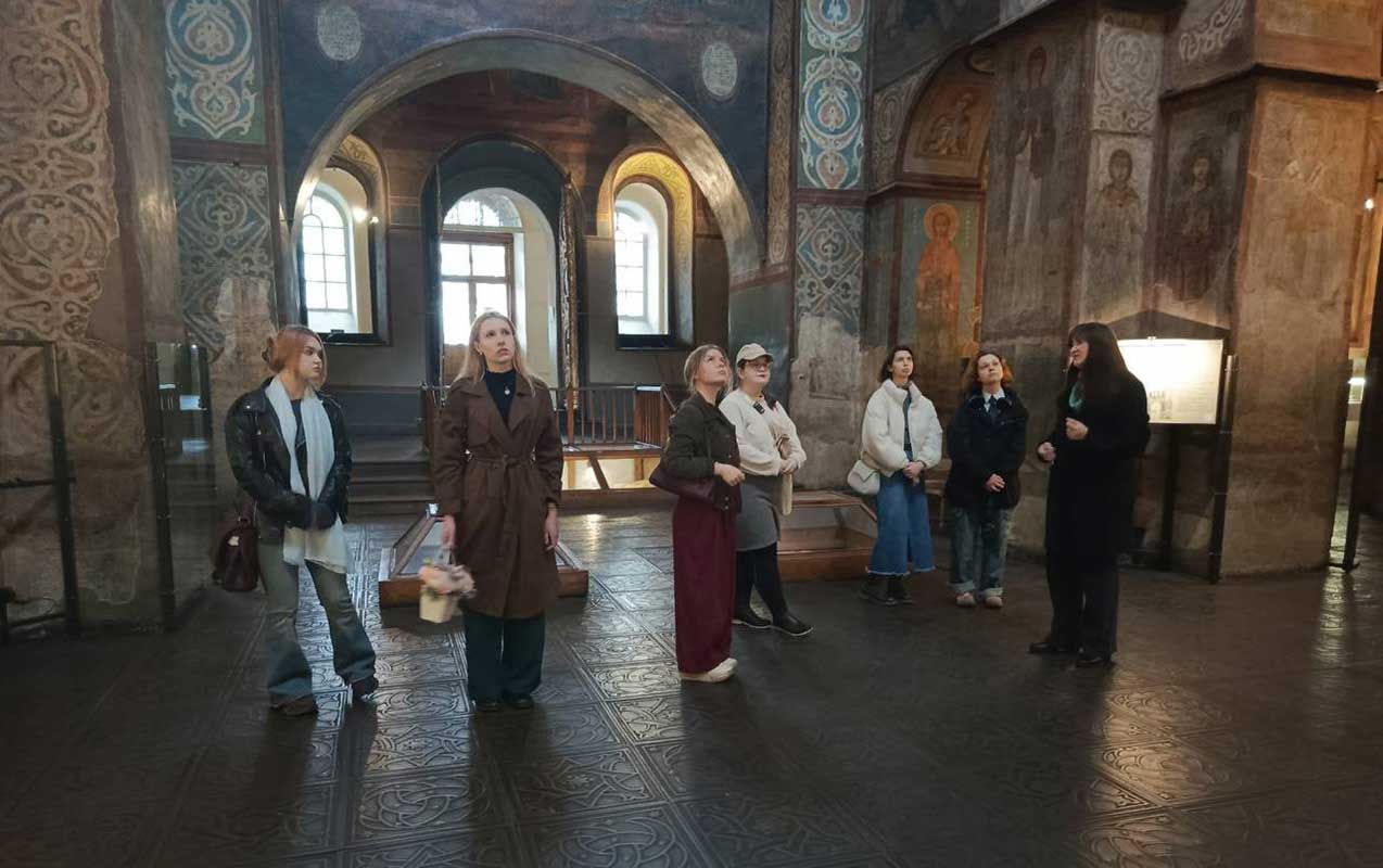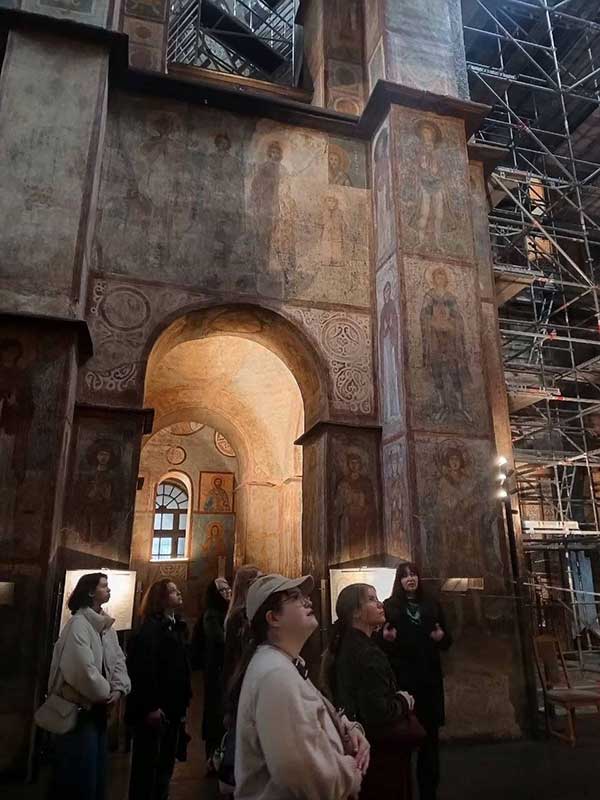 Екскурсія відбулася за участі професійного екскурсовода та охопила як музейні експозиції, так і територію заповідника. Студенти мали можливість ознайомитися з унікальними зразками монументального мистецтва, зокрема давніми фресками та мозаїками, що є визначними пам’ятками візантійської та української художньої традиції.