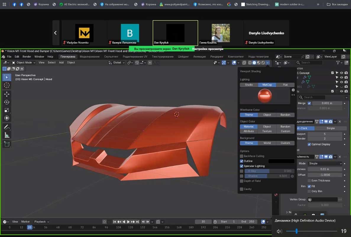 На кафедрі промислового дизайну та комп’ютерних технологій відбулася чергова зустріч гуртка «Автомобільний дизайн та моделювання». Цього разу захід було організовано в онлайн-форматі. У межах зустрічі учасники представили результати власних напрацювань у сфері комп’ютерного 3D-моделювання автомобільного транспорту. Поділилися досвідом роботи з інструментами 3D-проєктування, використання сучасних програмних засобів для створення та візуалізації тривимірних об’єктів. Розглянули питання пропорцій, деталізації екстер’єру, продемонстрували моделі транспортних засобів, окремих вузлів і елементів конструкції.