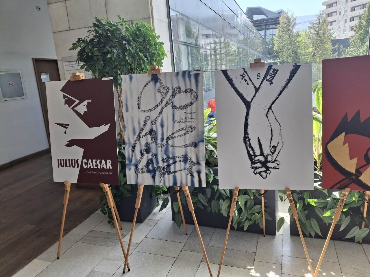 Презентовані плакати студентів Академії Бойчука це рецепція творчості Шекспіра через парадигму своїх поглядів, світогляду, моральних цінностей. Це рефлексії на тему жертовності, морального вибору, справедливості. Викорстовуючи візуально-образну мову графічного дизайну: шрифти, колір, символи вони намагалися привернути увагу глядача до переосмислення таких категорій як кохання, влада, зрада, помста та смерть.