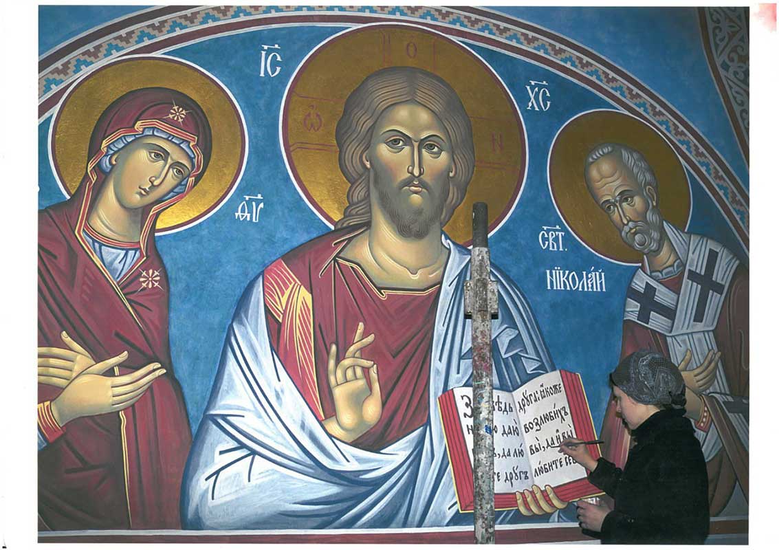 - Храм Володимирської ікони. м. Київ вул. Глибочицька Керівник і учасник розпису вівтаря і притвору.