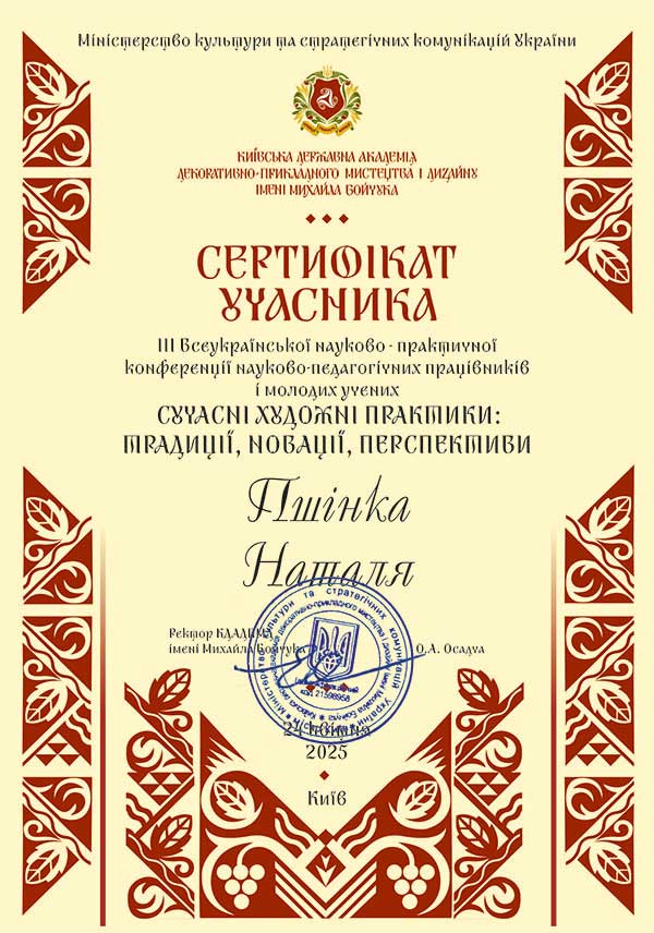 ПРОГРАМА ІІІ Всеукраїнської науково-практичної конференції науково-педагогічних працівників і молодих учених «Сучасні художні практики: традиції, новації, перспективи» (24 квітня 2025 р.)