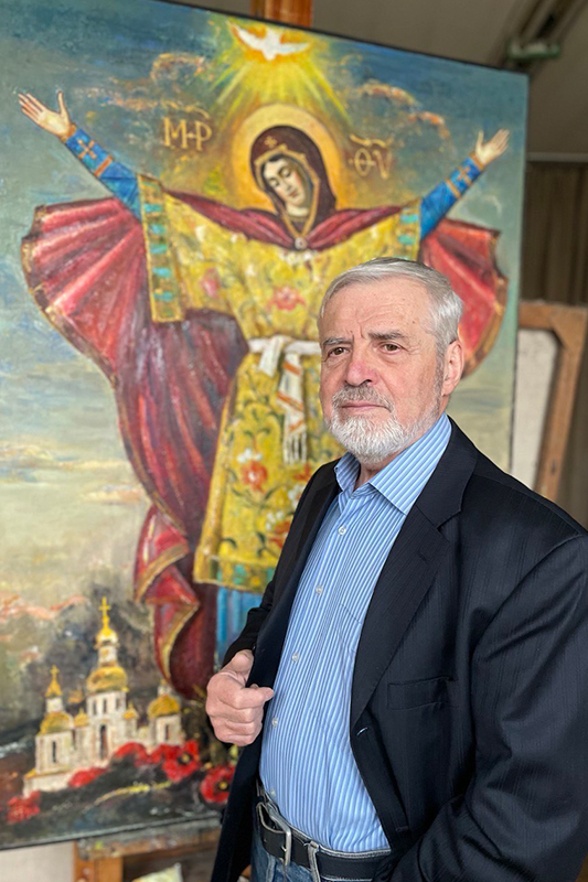 Автор монументальних розписів Михайлівського Золотоверхого собору (1999-2000 рр.).
